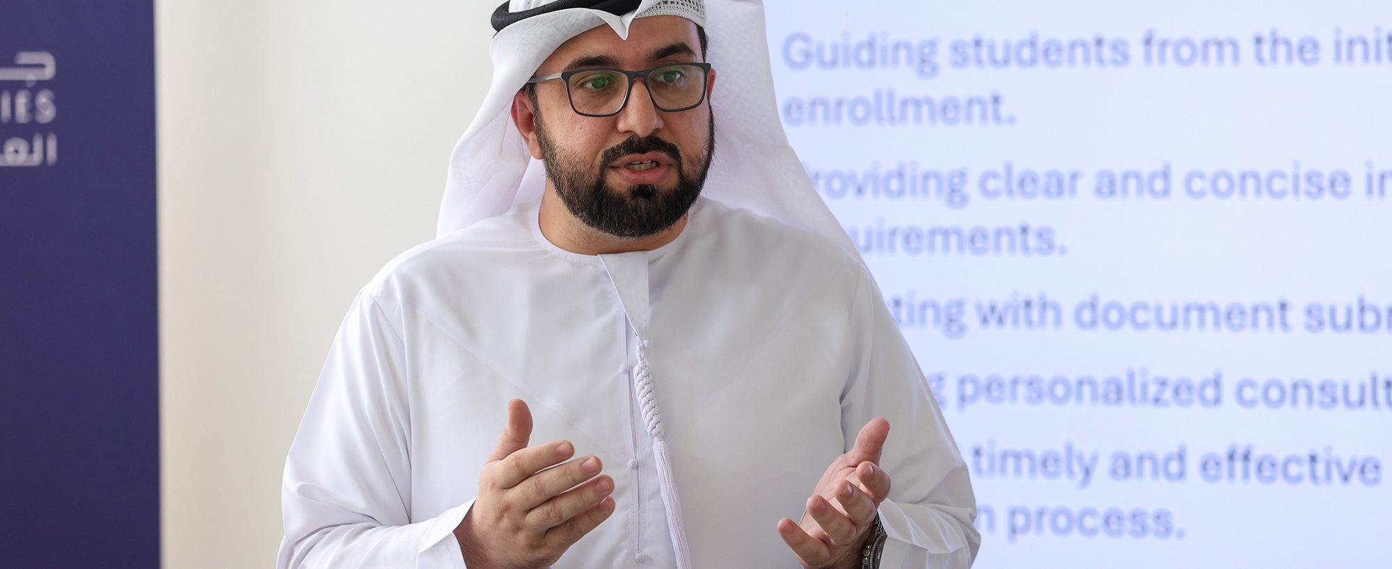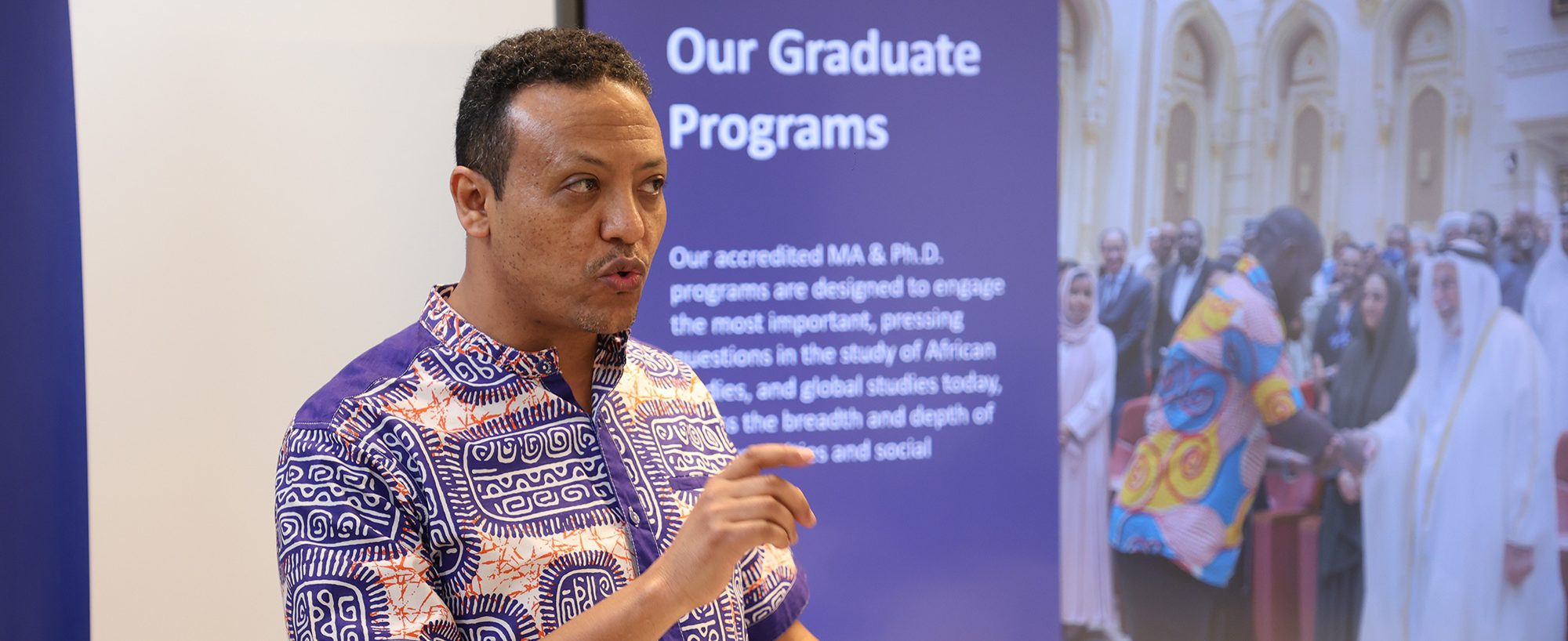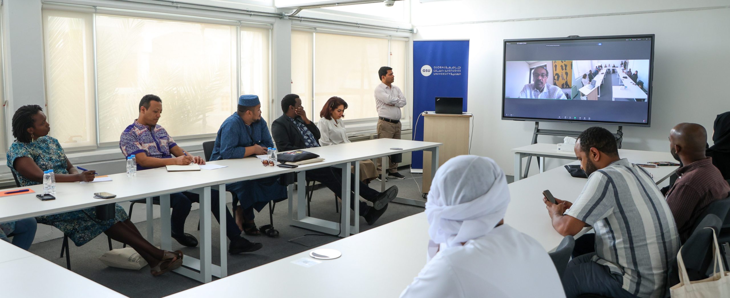 تضمَّنت الجلسات كلمة ترحيبية ألقاها الأستاذ الدكتور صلاح محمد حسن، مدير جامعة الدِّراسات العالمية وعميدمعهد إفريقيا، نيابةً عن رئيسة الجامعة، الشَّيخة حور القاسمي. وانضمَّ إليه كلٌّ من الأستاذ بنيام سيساي منديو،العميد المشارك في معهد إفريقيا ومدير الدِّراسات العليا، وسارة مجدي، مديرة الشُّؤون الأكاديمية، حيث قدَّمواإضاءات وإرشادات حول الحياة في مرحلة الدِّراسات العليا، وتوقُّعات المناهج، وفرص البحث العلمي. كما ساهمتجلسات إضافية أدارها مسجِّل الجامعة، ومكتب التَّسجيل القبول، وقسم خدمات دعم الطُّلَّاب، إلى جانب جولة فيالحرم الجامعي، والتَّعريف بالمناخ الثَّقافي الثري في إمارة الشَّارقة، ساهمت مجتمعة في مساعدة الطُّلَّاب على التَّأقلم مع بيئتهم الأكاديمية والاجتماعية الجديدة.