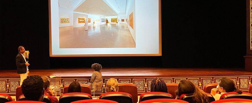 Anneka Lenssen, Associate Professor of Global Modern Art at the University of California, Berkeley and a current Senior Fellow at the NYUAD Humanities Research Fellowship for the Study of the Arab World and board member for al Mawrid Arab Center for the Study of Art, who was the lead facilitator of the visit shared, “This has been an incomparable gathering! It is hard to imagine such an exciting meeting taking place anywhere else. We left with a new understanding of the transformative mission of The Africa Institute as a hub for postgraduate studies in African and African diaspora studies, a resource, and a visionary actor in the art world.”