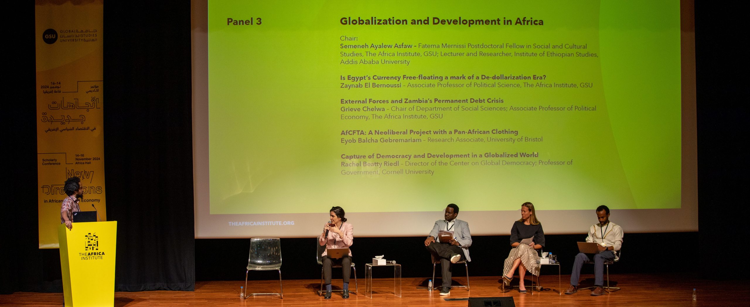 The conference opened with welcome remarks from Her Excellency Sheikha Hoor Al Qasimi, President of GSU, and Professor Salah M. Hassan, Chancellor of GSU and Dean of The Africa Institute. The opening session was followed by the conference convenor, Grieve Chelwa, Chair of Social Sciences and Associate Professor of Political Economy at The Africa Institute (GSU).