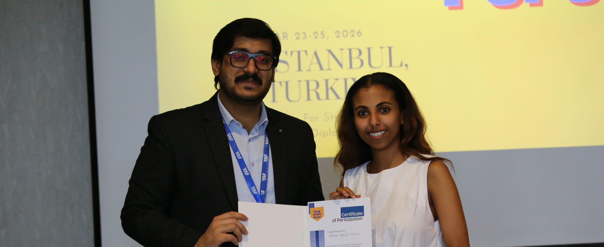 Afomiya Ayalew Mitiku, MA student in Global African Studies specializing in Diplomacy and Africa’s International Relations at The Africa Institute, Global Studies University, served as Program Manager and Master of Ceremony at the Young Artists Forum – Istanbul 2026, held March 23–26, 2026. Organized by the Center for Strategy and Cultural Diplomacy, the forum brought together an international community of artists, scholars, and thinkers to explore the intersections of art, diplomacy, identity, and global transformation.