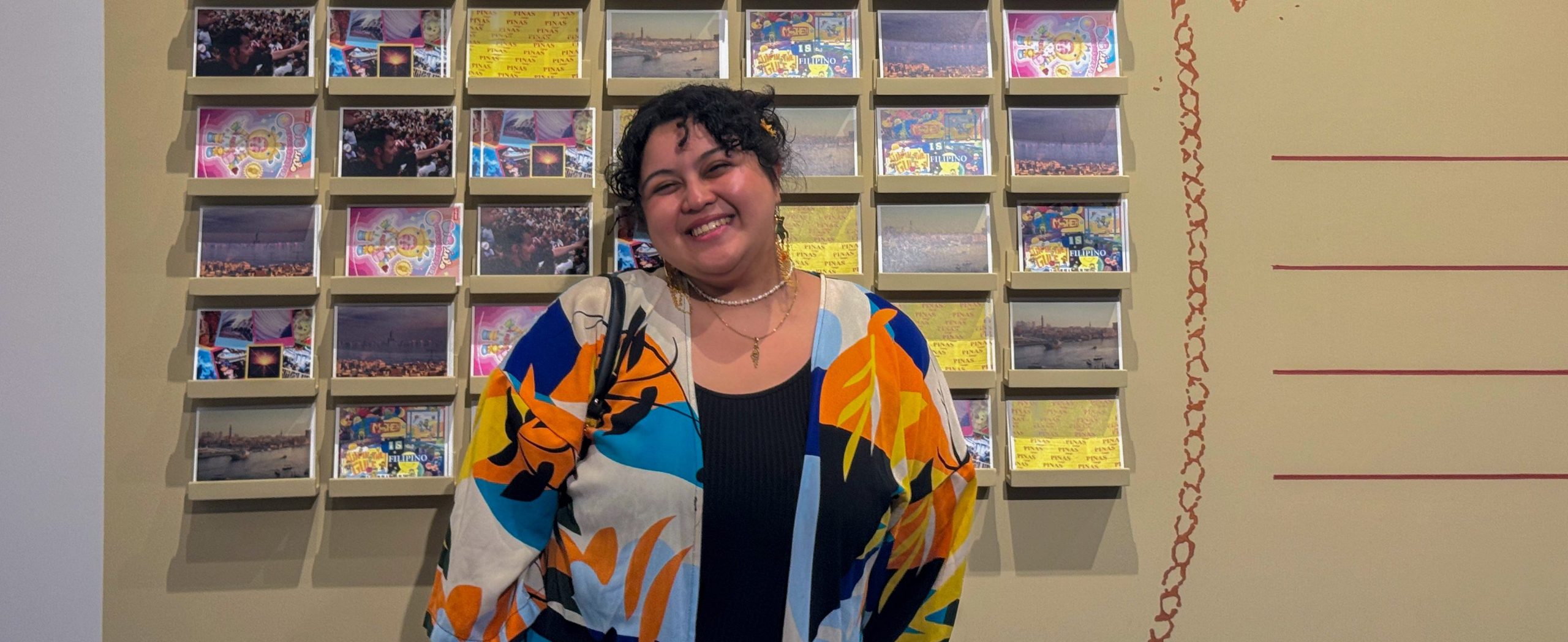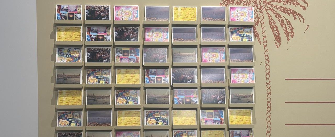 Farah’s commissioned work with Sa Tahanan Co., a Filipino creative collective, responds to the Dubai Summer Surprises mascot, Modhesh, and its late Filipino creator Romy Miclat. Reflecting on the contributions of the Filipino diaspora in the Gulf, her postcard installation, Modhesh Is Filipino, uses mixed media collage to explore diasporic identity, tourism, and cultural representation.