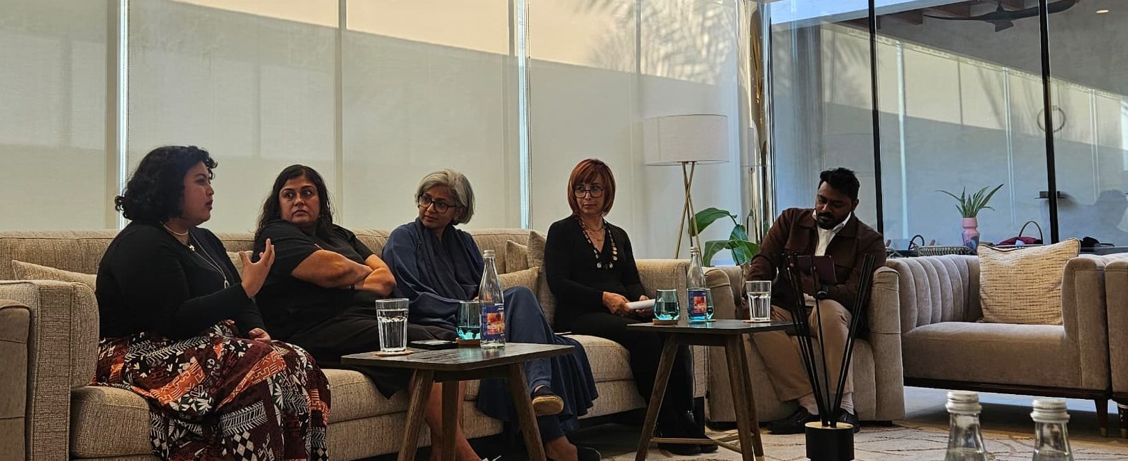 The panel examined how everyday objects and material practices shape memory, belonging, and diasporic life across borders. It was moderated by Derick Gladston Zeeno and featured Prof. Neha Vora, Professor of Anthropology at the American University of Sharjah; Prof. Anju Paul, Professor of Social Research and Public Policy at New York University Abu Dhabi; Homa Farley, UAE-based master potter, ceramic designer, and educator; and Ali.